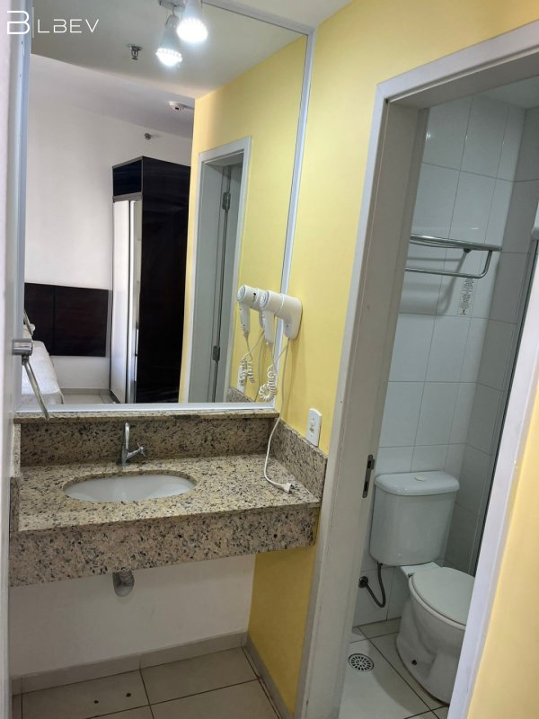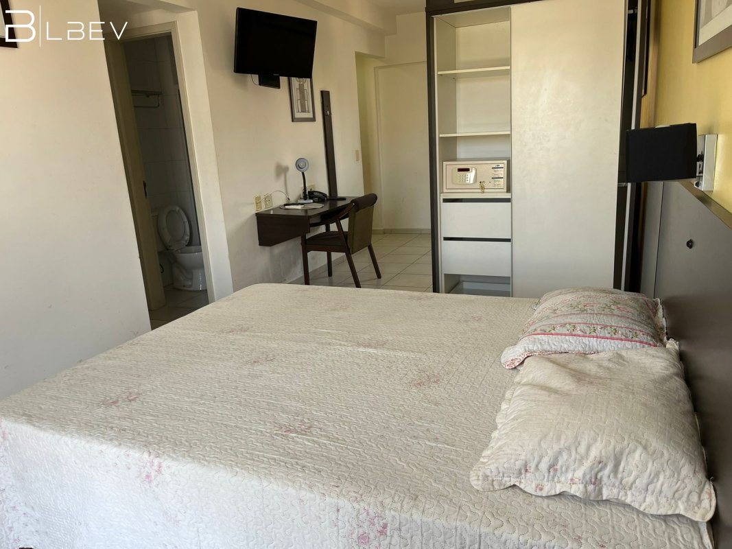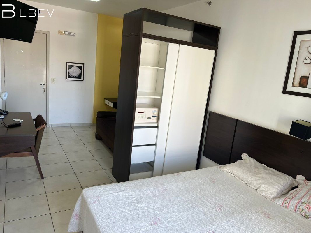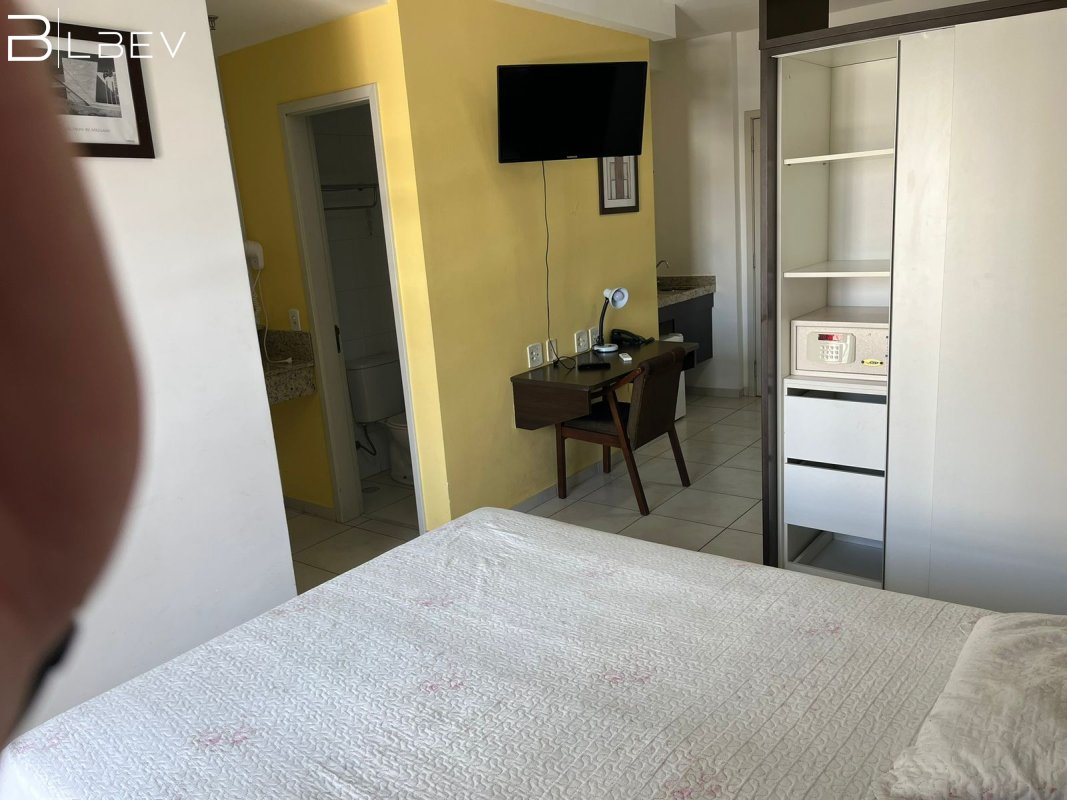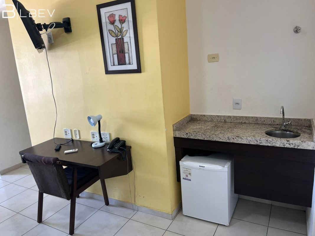 Estúdio mobiliado e pronto para usar. Ar-condicionado, TV, frigobar e estação de trabalho.